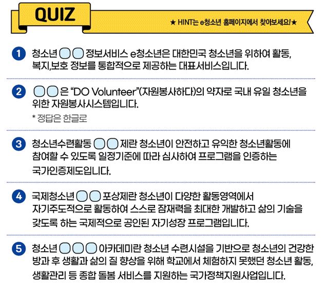 e 청소년 퀴즈( 힌트는 e청소년 홈페이지에서 찾아보세요!)