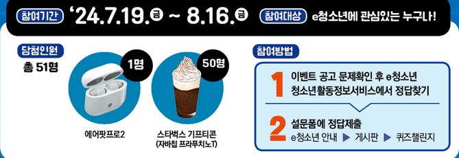 - 참여기간: 2024년 7월 19일(금) ~ 2024년 8월 16일(금)