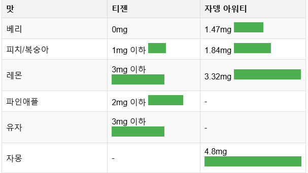 티젠 콤부차와 자뎅 아워티 콤부차는 카페인 함량에서 차이를 보입니다. 제품의 맛에 따라 함유량이 달라지며, 이를 고려하여 자신의 필요에 맞는 제품을 선택할 수 있습니다.